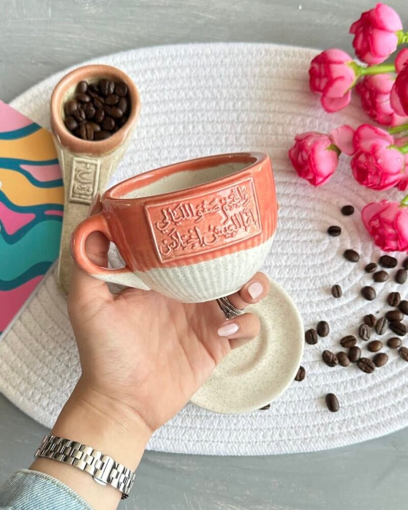 كوب خزفي يدوي الصنع والحفر