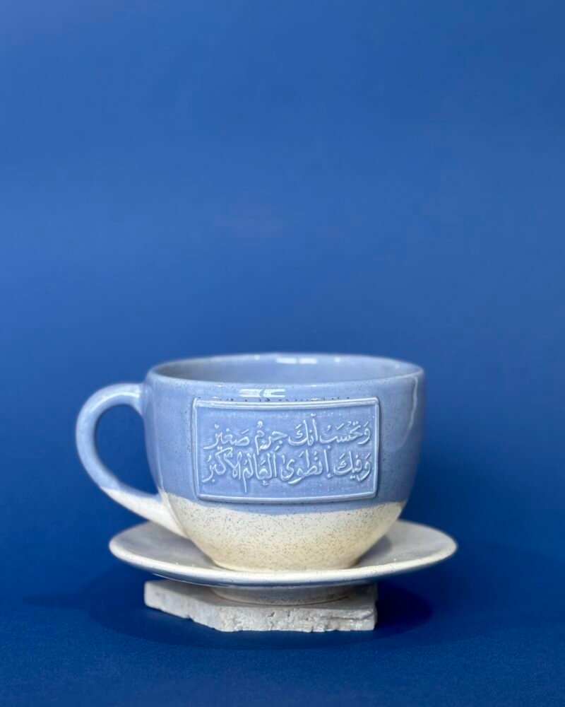 • كل كوب مصنوع خصيصاً بشكل يدوي كقطعة فريدة لذلك تحدث بعض الاختلافات الطبيعية في توزيع اللون وكثافته وتغطيته بين كل كوب وكوب.