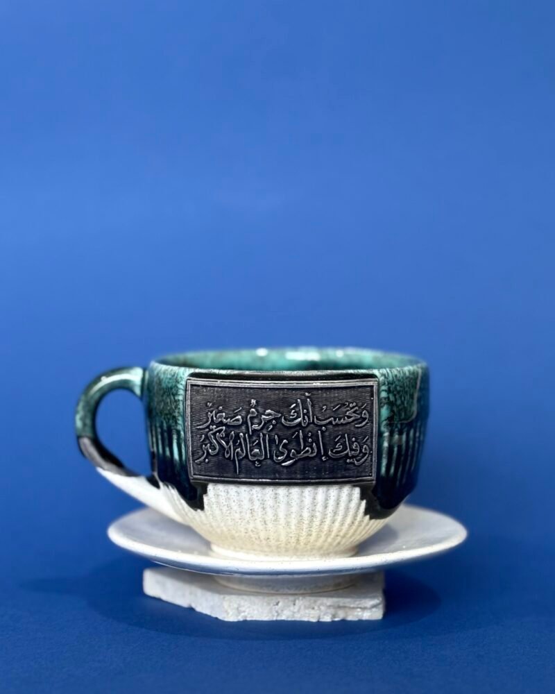 • كل كوب مصنوع خصيصاً بشكل يدوي كقطعة فريدة لذلك تحدث بعض الاختلافات الطبيعية في توزيع اللون وكثافته وتغطيته بين كل كوب وكوب.
