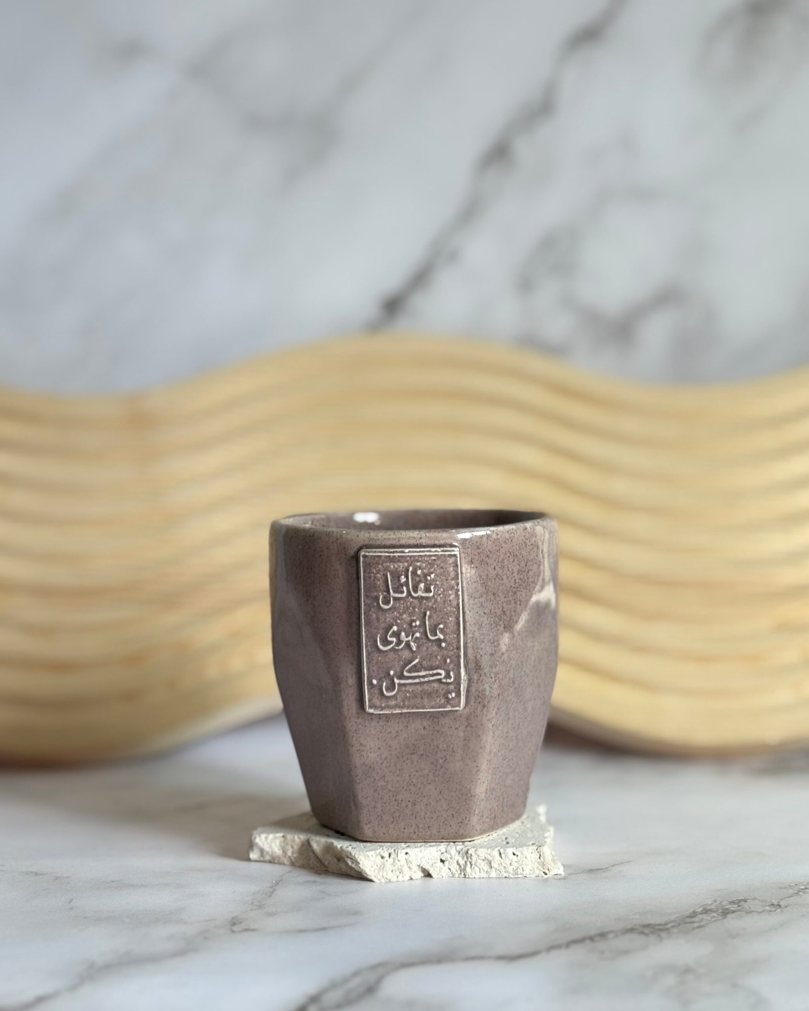 كوب خزفي يدوي الصنع والحفر