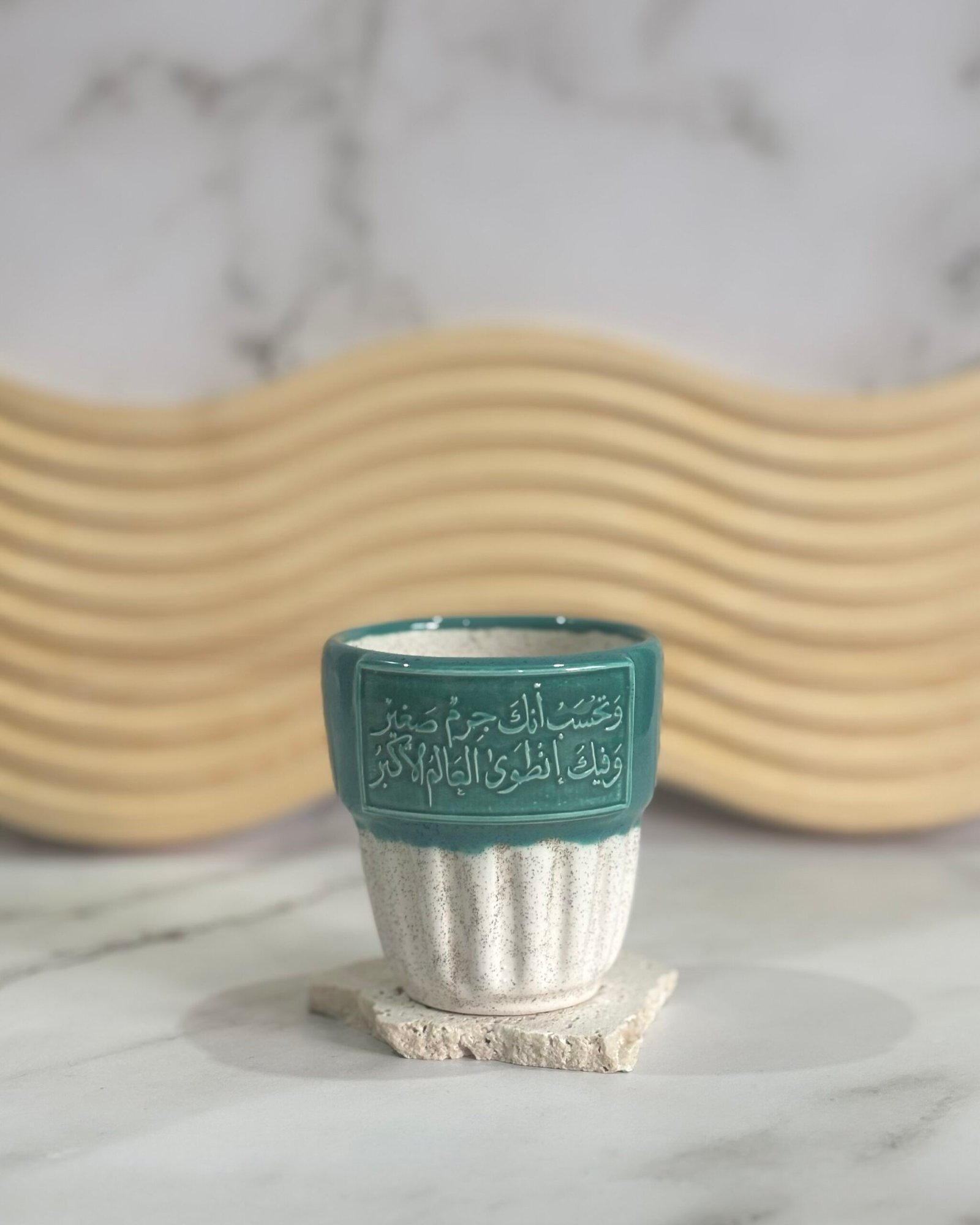 كوب خزفي يدوي الصنع والحفر
