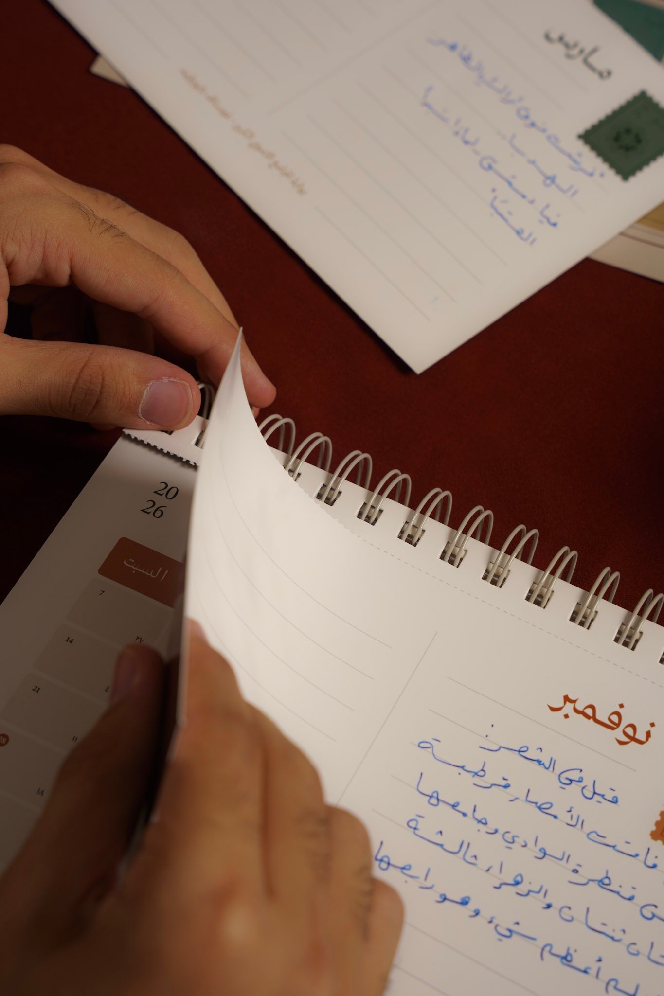 تتضمن الرزنامة مساحات مخصصة للكتابة لتدوين ملاحظاتك، خططك، وأحلامك، لتصبح شاهدًا على تفاصيل عامك ورفيقك اليومي.